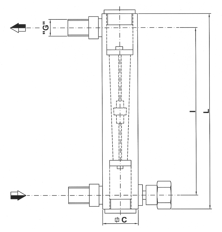 The “R-R” and “PL-R” series flowmeters are produced entirely in Plexiglas with a guided float available in different materials: AlSl 316, Hastelloj, PVC for aggressive liquids.