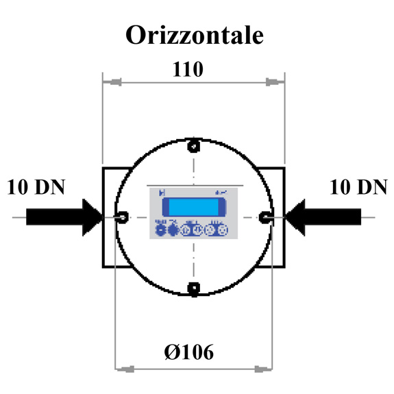 Il misuratore di portata D-EL viene usato per liquidi, si può montare con flusso verticale e orizzontale mantenendo un tratto rettilineo della tubazione di 10 diametri a monte e 10 diametri a valle.Viene costruito in due versioni : la versione filettata , e la versione da inserire tra flange wafer , in PVC e in AISI .Il principio di funzionamento a girante, movimentata al passaggio del flusso trasmette degli impulsi elettrici ad un sensore Hall, montato esternamente, senza contatto con il liquido,convertito poi in portata, con una precisione del 2% .Possiede un Totalizzatore, un elettronica compatta con uscita Analogica e 4-20 mA.In modo molto semplice si possono programmare due allarmi sull’intera scala, agendo su una tastiera a membrana.